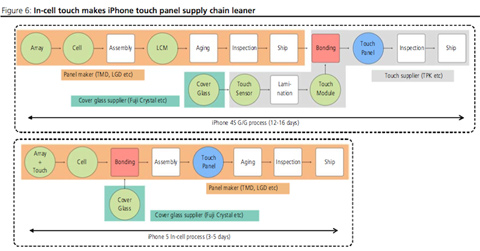 Tin đồn về việc Apple sẽ áp dụng công nghệ "in-cell" cho màn hình iPhone thế hệ tiếp theo được nhà phân tích Ming-Chi Kuo tiết lộ từ hồi tháng 4. Ông tin rằng, công nghệ mới này rất có thể sẽ giúp iPhone thế hệ tiếp theo chỉ dày gần 8mm so với 9.3mm của iPhone 4S. Điều này sẽ tạo ra lợi thế cạnh tranh về thiết kế mỏng với các hãng sản xuất smartphone đối thủ.
